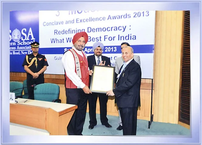 “The Modernites’ Achievers Award for Excellence 2013” on behalf of Modern School Old Students Association (MSOSA) being presented to Padma Shri Shri Surinder Mehta , founder Chairman, Prime Group by Hon’ble General J.J. Singh, Governor of Arunachal Pradesh, for his notable contributions to the Indian economy, at a function held on 27th April, 2013 in New Delhi.